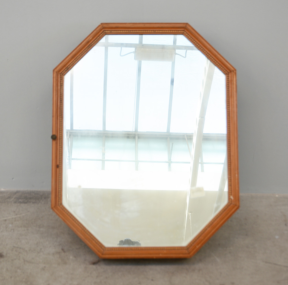 Specchiera pensile ad un’anta celante vani e ripiani con specchi (56x74x10) (difetti)