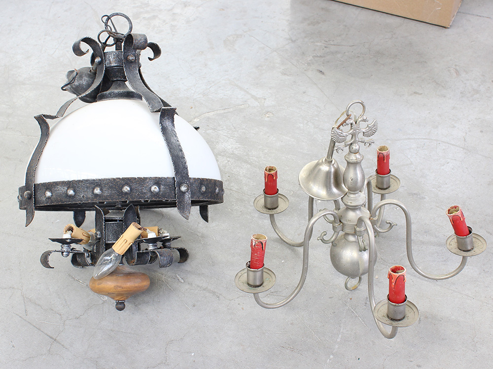 Due lampadarietti, uno in ferro battutto e uno in stile olandese (difetti)
