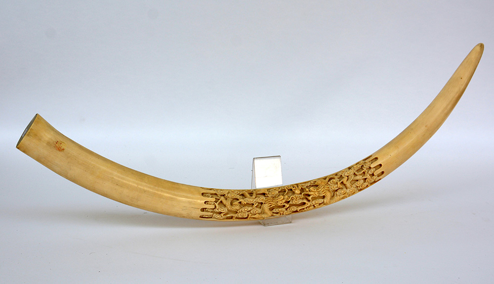 Zanna in avorio lavorato con draghi (l. 90 cm.)(difetti)