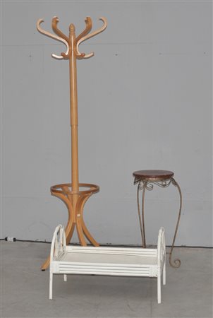 Lotto composto da un appendiabiti, un tavolino con base in ferro dorato e un...