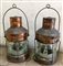 Coppia di lanterne nautiche da ancoraggio in rame e vetro, montate a luce...