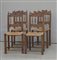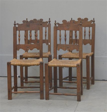 Gruppo di quattro sedie con schienale a listelli torniti. Secolo XIX (difetti)