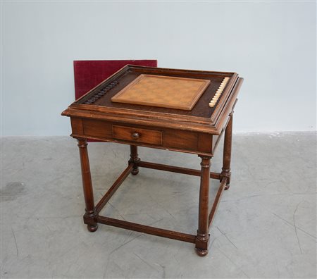 Tavolo da gioco con piano ribaltabile celante vano con scacchiera (cm...