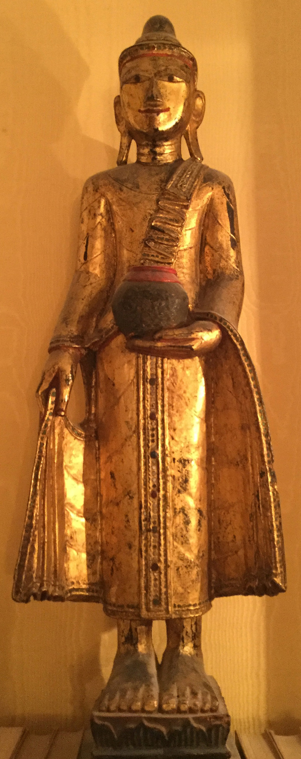 Scultura raffigurante divinità in legno dorato con applicazioni di strass in...