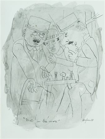 Franz Borghese Matto in tre mosse, 1977 China acquerellata su carta, cm....