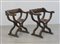 Coppia di poltroncine Savonarola con braccioli scolpiti a motivi vegetali,...