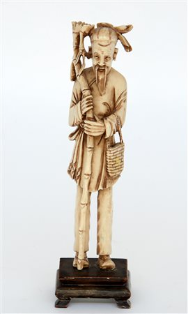 Figura maschile in osso con base in legno (h. 21 cm) (difetti). Cina, sec. XX