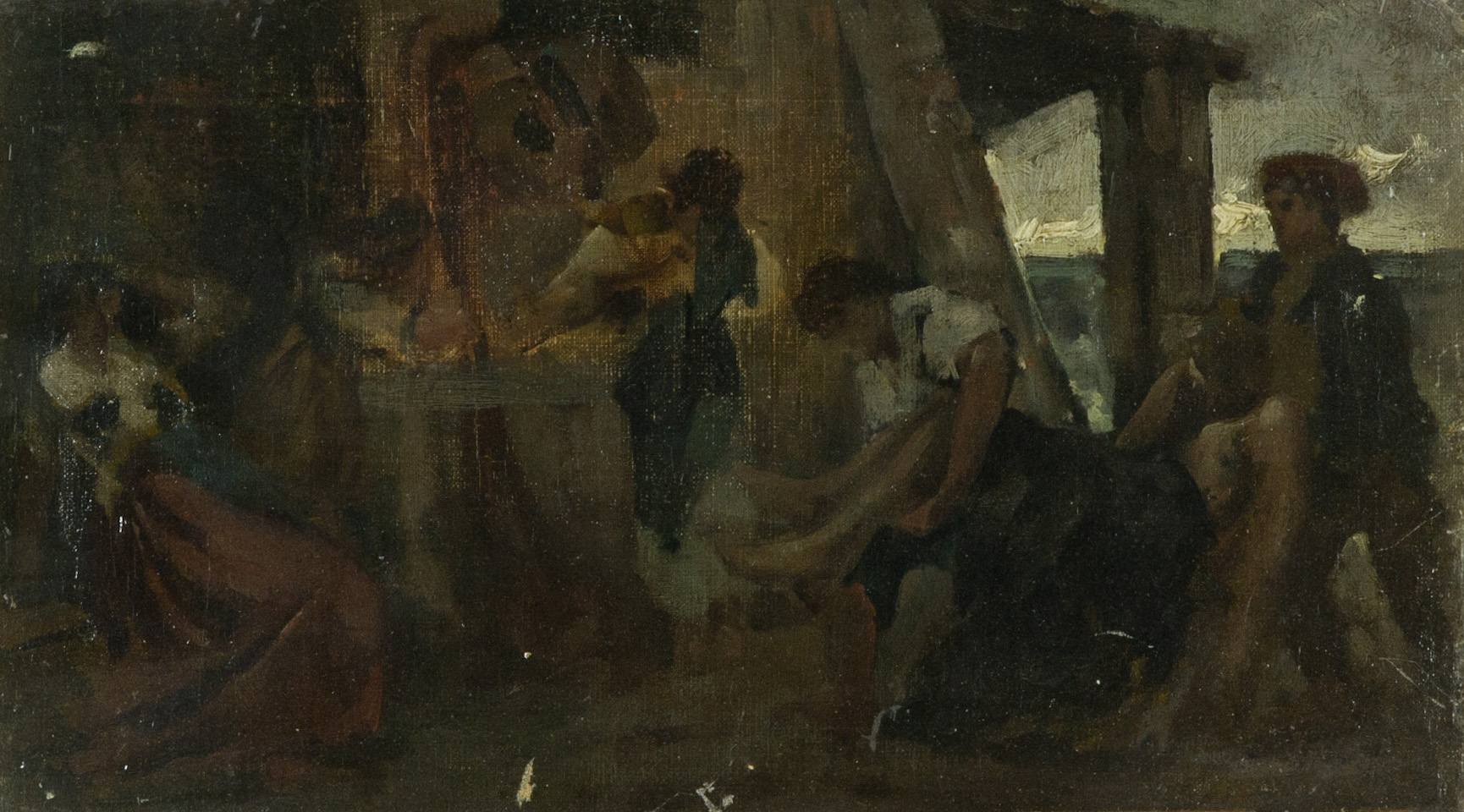 Anonimo dell'800 Senza titolo Olio su tela, cm. 18,5x32,5 La tela presenta cadute di colore.