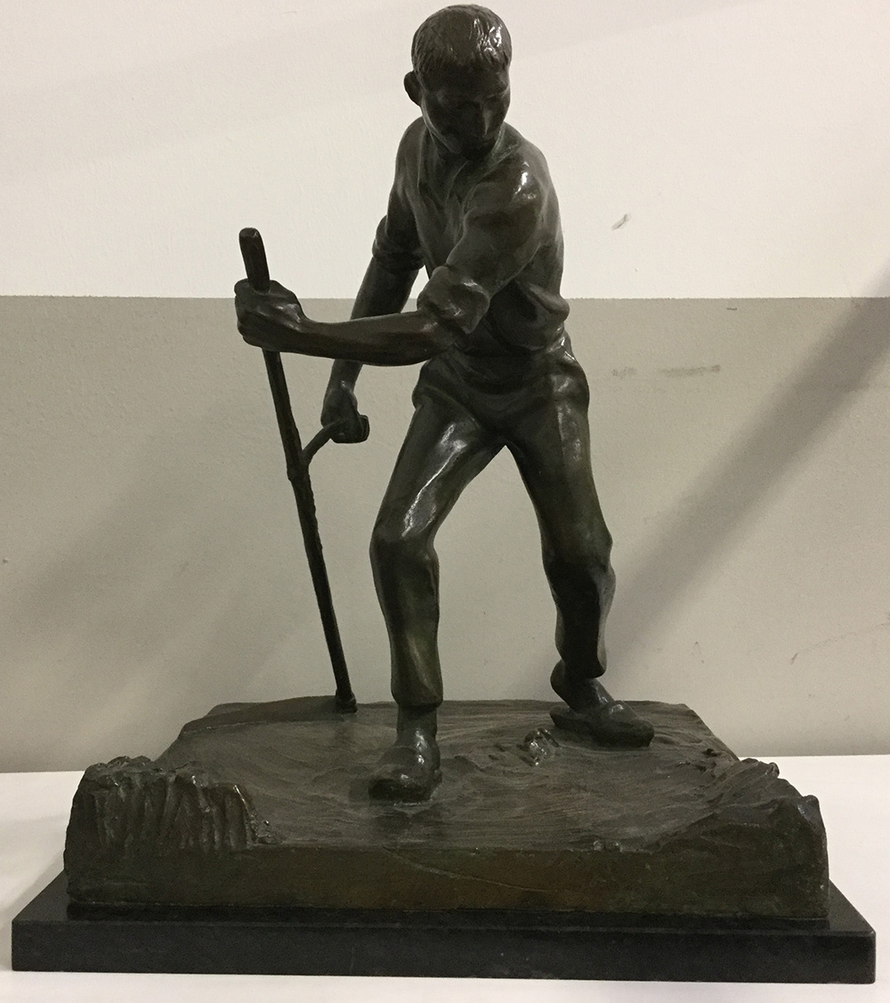 Domenico Colpani "Falciatore" scultura in bronzo su base in marmo (cm tot...