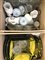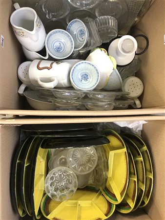 Lotto di due cartoni contenenti numerosi oggetti per la tavola di materiali e...