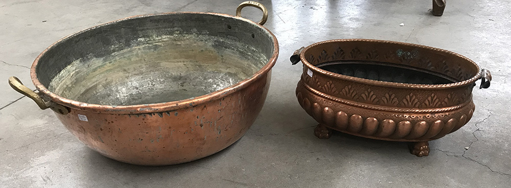 Lotto composto da due cachepot biansati in rame (difetti)