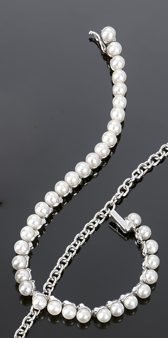 BRACCIALE Bracciale in oro bianco con trentasette perle giapponesi del diametro di mm 5,5 Peso gr. 17