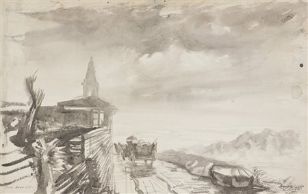 Pietro Annigoni Paesaggio inglese China acquerellata su cartoncino, cm. 36x56...