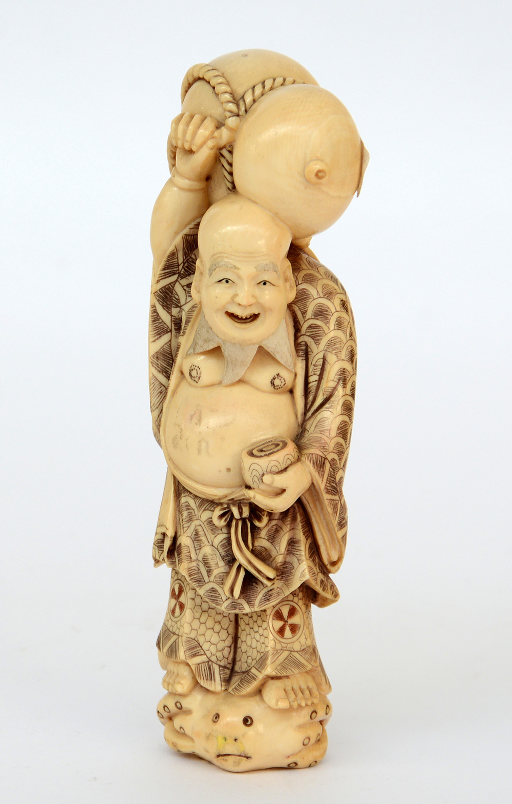 Figura in avorio raffigurante Hotei (difetti)