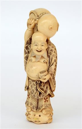 Figura in avorio raffigurante Hotei (difetti)Giappone, inizio sec. XX (h. 17...