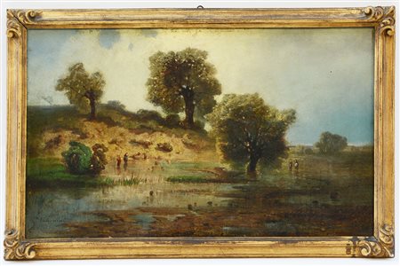 Gottardo Valentini (Milano 1820 - Milano 1884)"Campagna" olio su tavoletta...