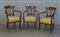 Gruppo di tre poltrone con schienale a giorno sagomato, braccioli curvi e gambe mosse. Secolo XIX