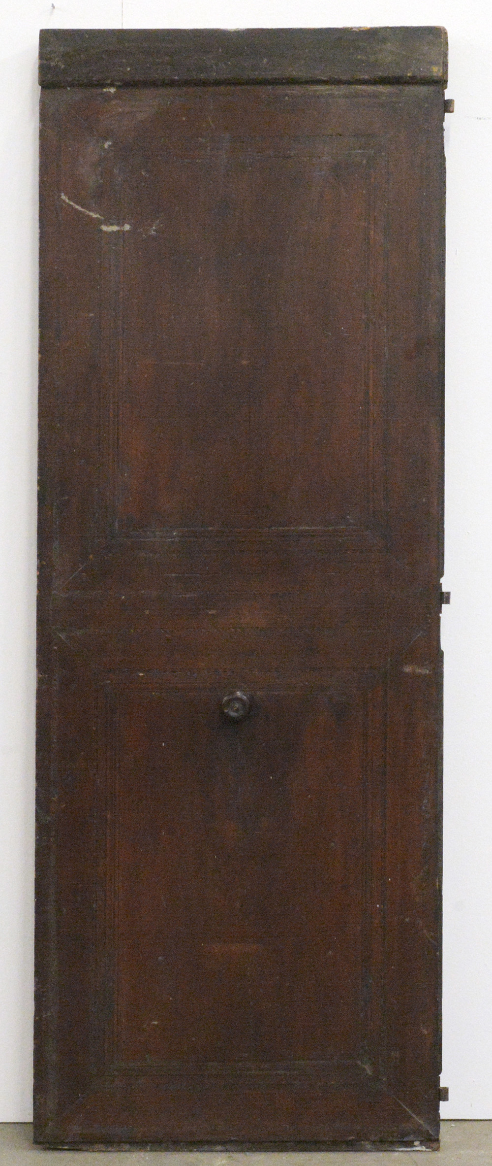 Antico portoncino a un battente decorato da cornici concentriche filettate e intarsiate (cm 213x76). (Difetti)