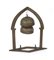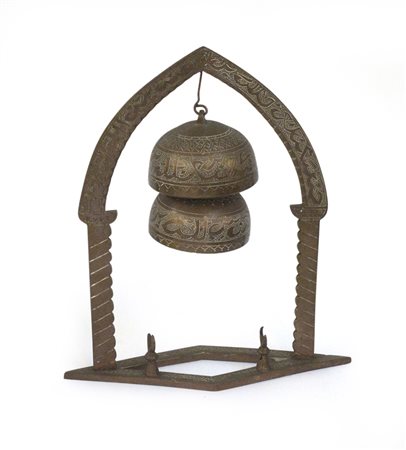 Arte islamica. Campane in metallo entro struttura ad arco ogivale (h. cm 28,5)