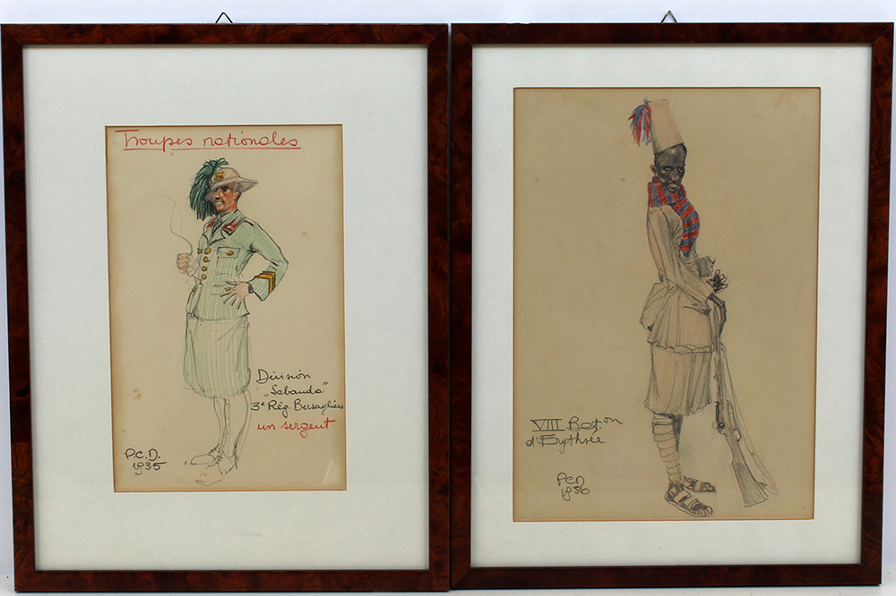 Scuola francese, inizio secolo XX. Due disegni di misure differenti siglati e datati 1935 in basso a sinistra, in cornici