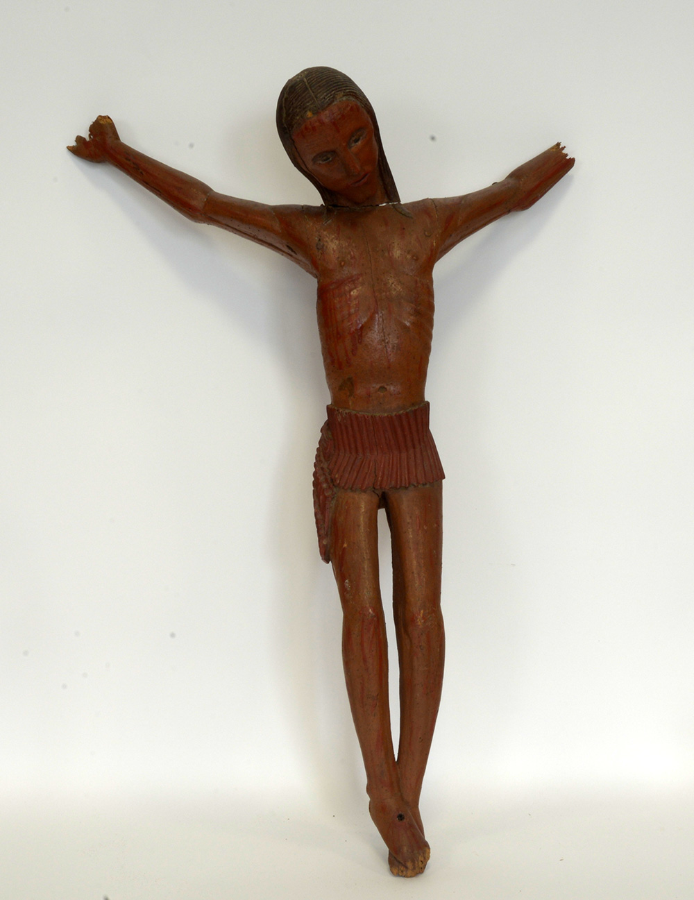 Arte del secolo XVII "Cristo crocifisso" scultura lignea decorata in policromia (h cm 80) ( restauri e mancanze)