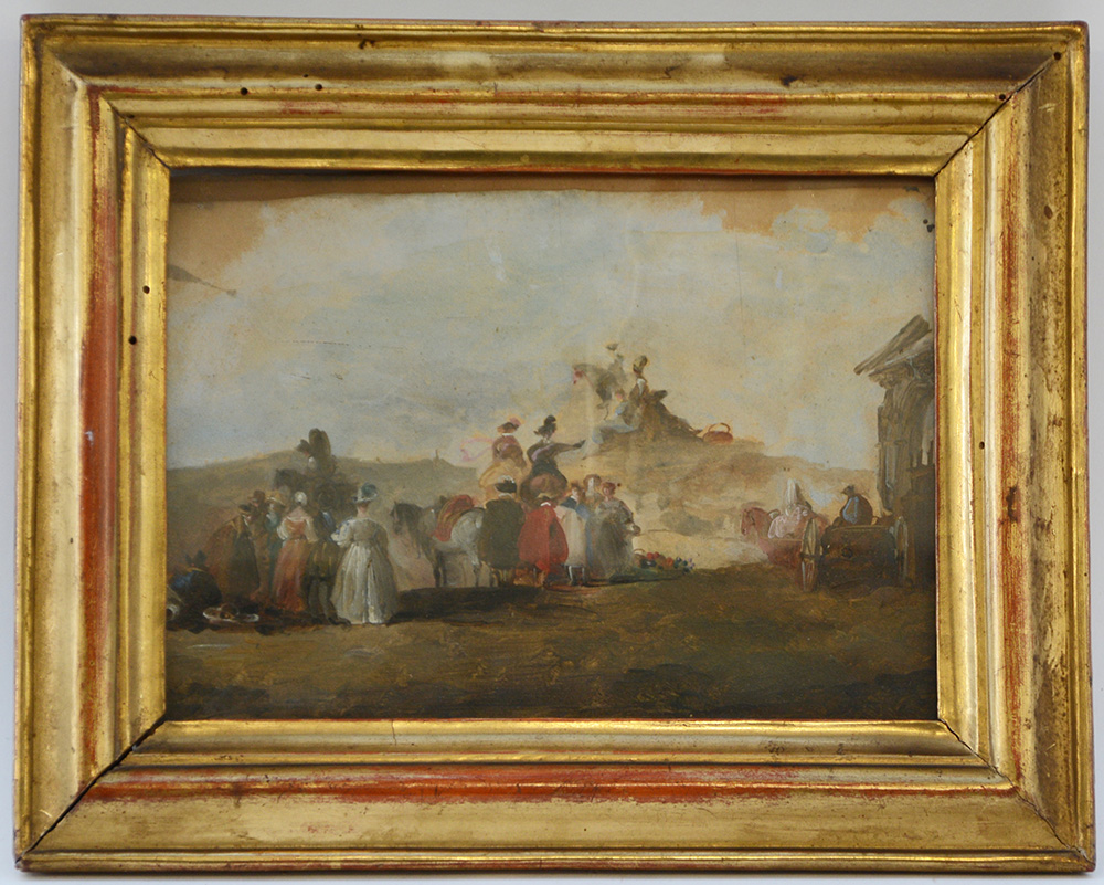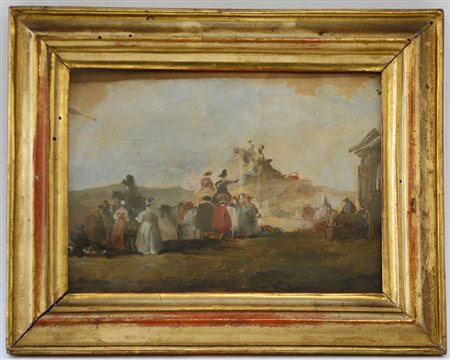 Seguace di Giuseppe Bernardino Bison "Figure in un paesaggio" tecnica mista su cartoncino (cm 15x21) In cornice coeva