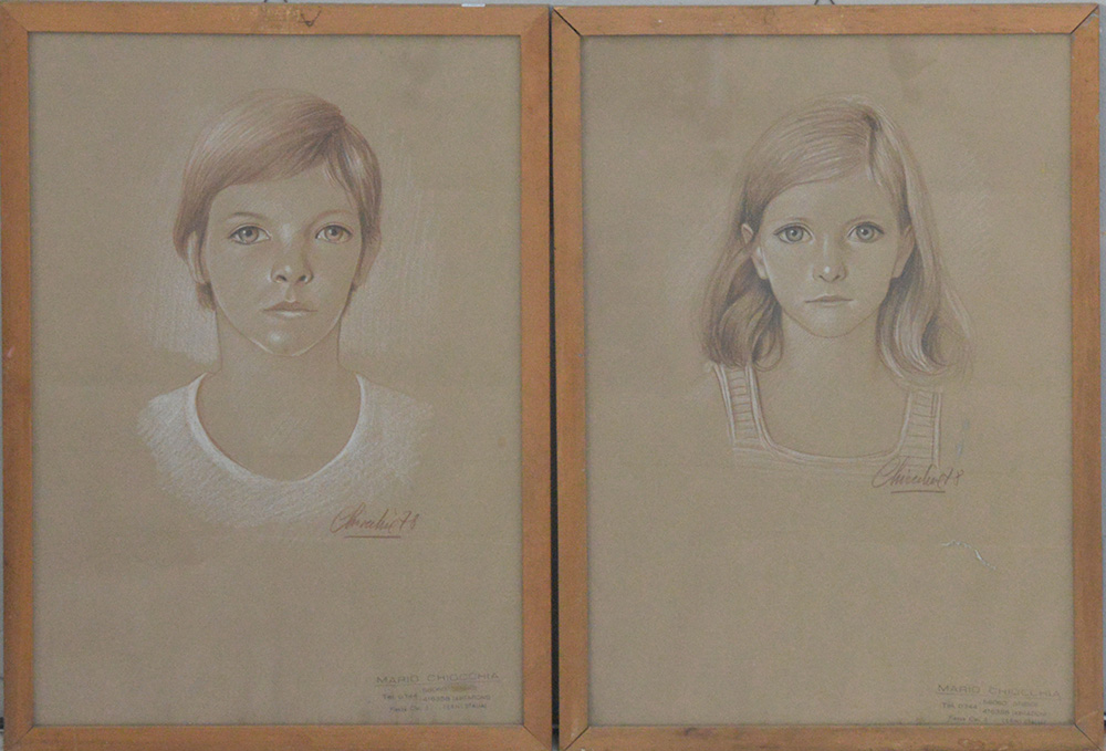 Firma indecifrata "Ritratti di ragazzo e ragazza" coppia di disegni firmati e...