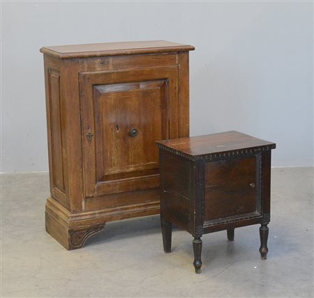 Lotto composto da un mobiletto e un comodino ad una anta, decori ed epoche...