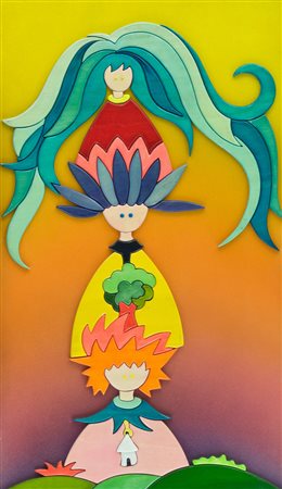 Massimo Sansavini Salta su, 2000 Polimaterico su tavola, cm. 85x50 Sul verso: firma, data e titolo; Timbro dell'Artista. Autentica dell'Artista su foto.
