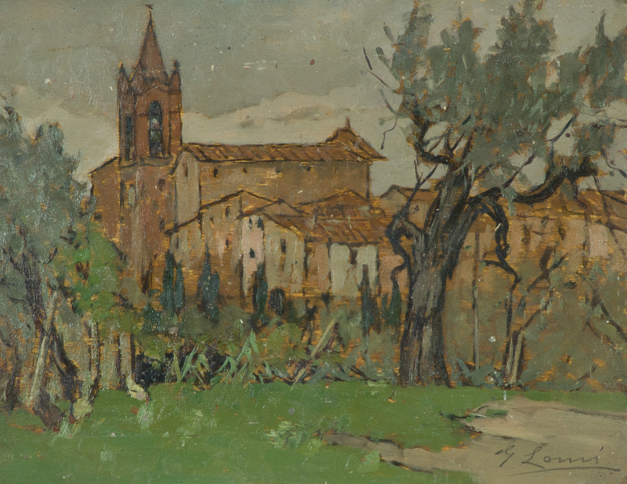 Giovanni Lomi Terriciola, 1940 Olio su tavola, cm. 18,5x24 Firmato in basso a destra. Sul verso: titolo. Autentica di Massimo Lomi su foto con Archivio n° 332.