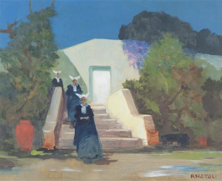 Renato Natali Ritorno dal vespro Olio su tavola, cm. 30x36 Firmato in basso a...
