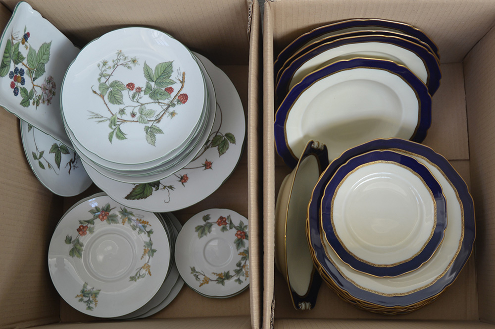 Lotto di due cartoni contenenti parti di servizi di piatti di manifattura...