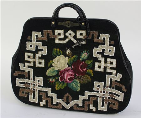Borsa da donna, inizio del secolo XX decorata a piccolo punto (difetti)