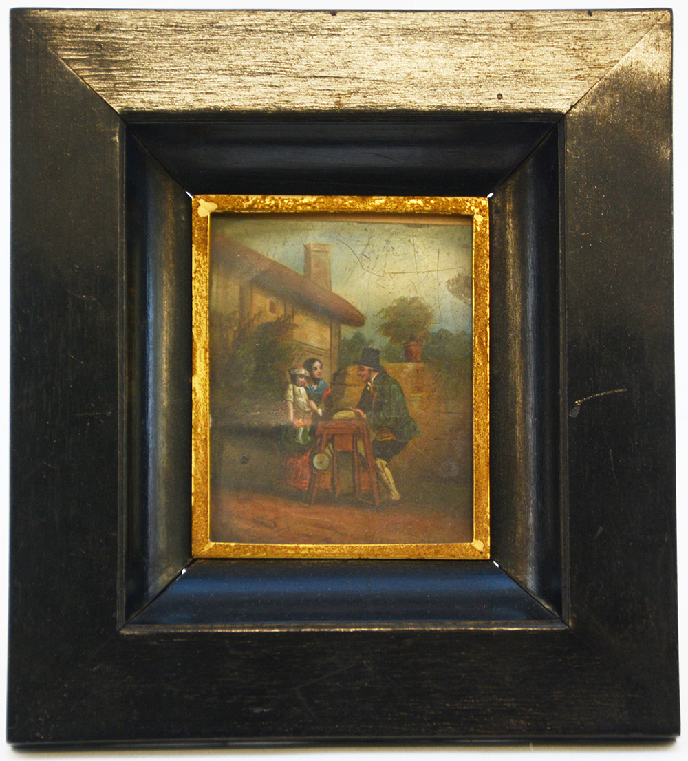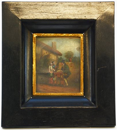 Scuola del secolo XIX "L'arrotino" olio su carta (cm 10x8) In cornice