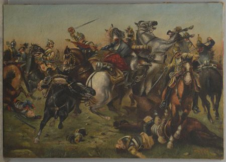 Scuola ungherese secolo XX, "Scena di battaglia" 1902, olio su tela (cm...
