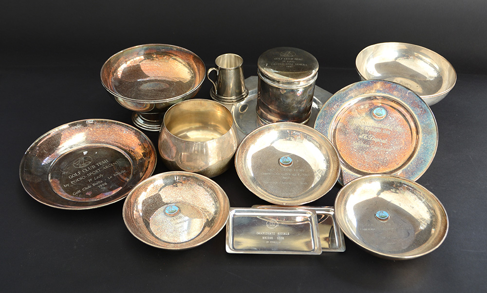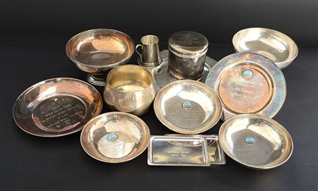 Lotto composto da tredici oggetti in argento (g 1800 ca.) (difetti)
