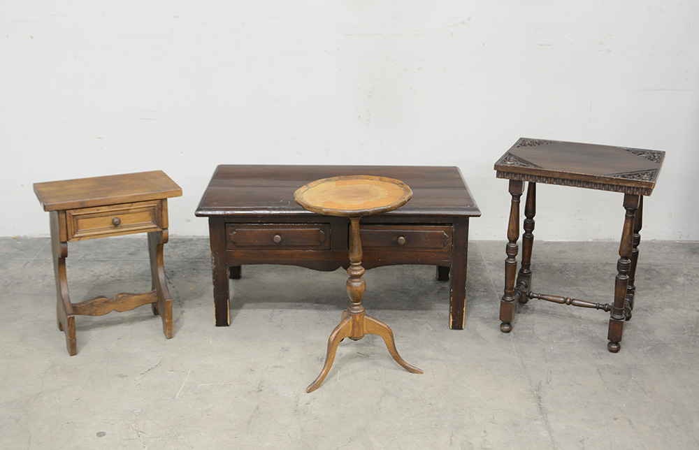 Lotto composto da quattro tavolini da salotto di forme e dimensioni diverse (difetti)