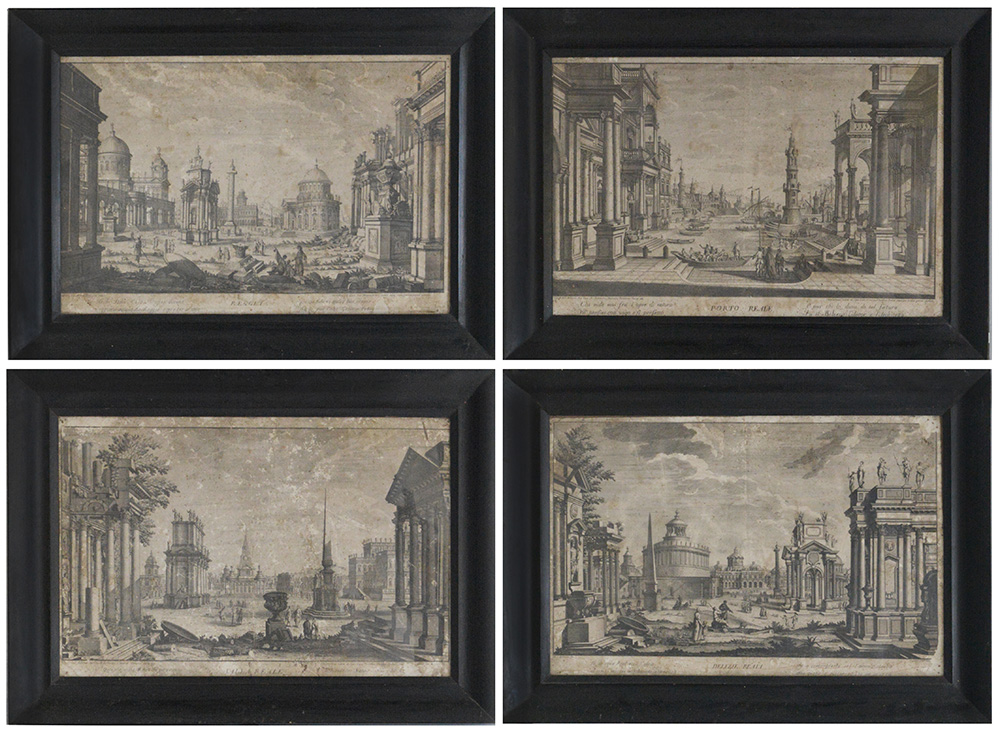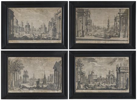 Bibiena "Scorci con ville e architetture" gruppo di quattro incisioni (cm...