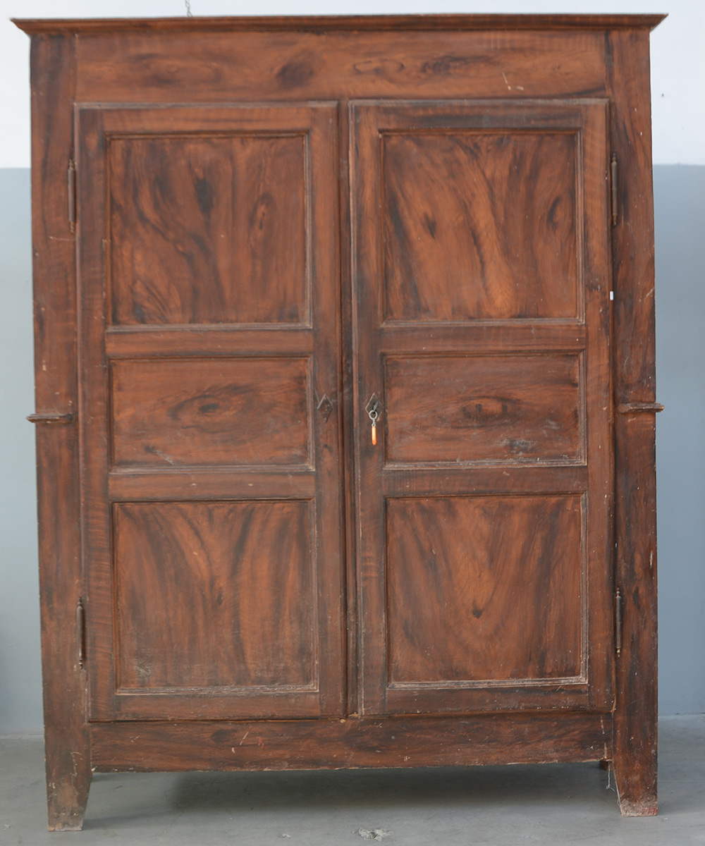 Armadio a due ante in legno tinto con piedi sagomati (cm 189x235x56) Inizio secolo XIX (difetti)