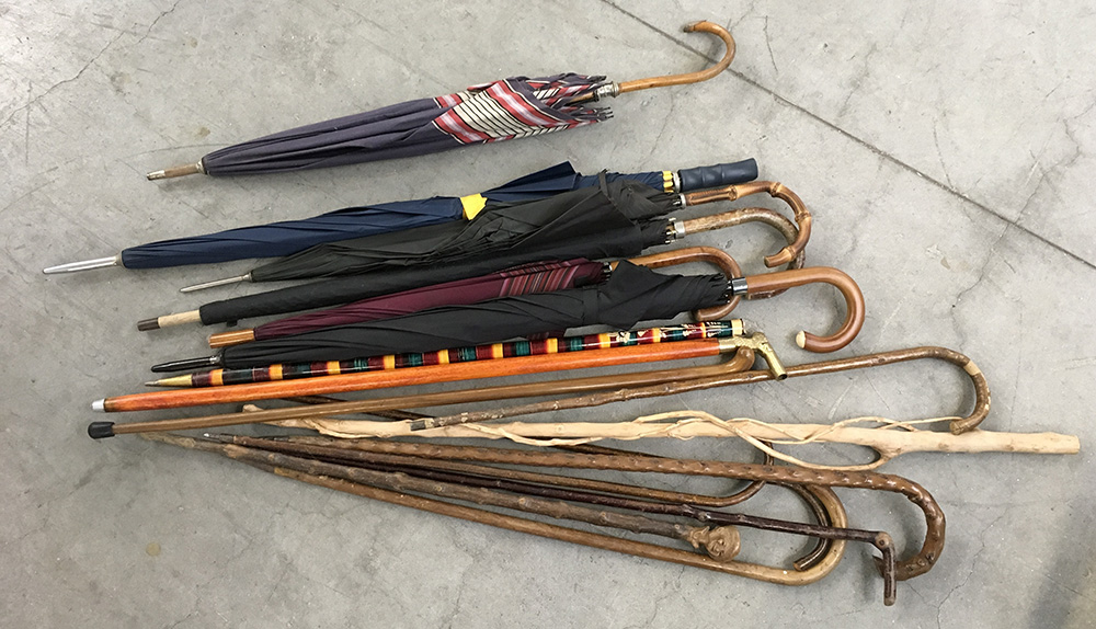 Lotto composto da numerosi ombrelli e bastoni (difetti)