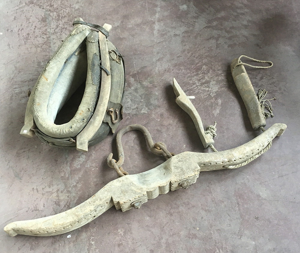 Lotto composto da un giogo per buoi e uno per cavallo (difetti e mancanze)