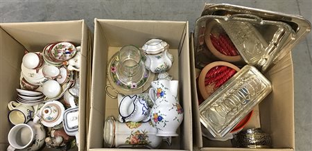 Lotto composto da tre scatole contenenti oggetti vari (difetti)
