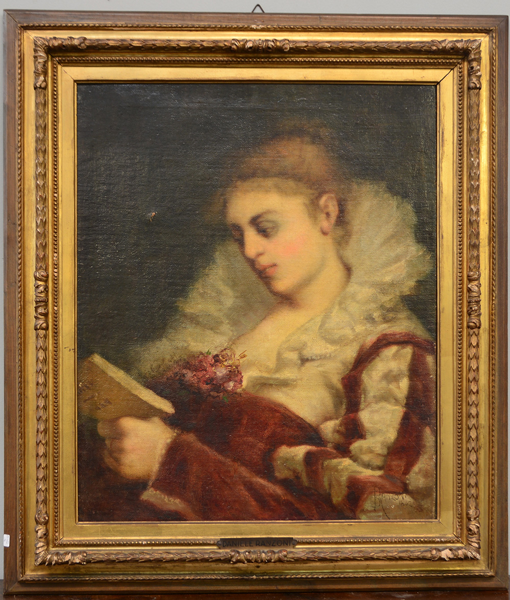 Ignoto "Donna che legge" olio su tela (cm 63x50) Firmato D.Ranzoni e datato...