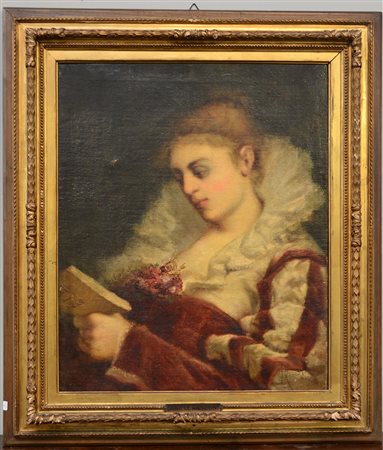 Ignoto "Donna che legge" olio su tela (cm 63x50) Firmato D.Ranzoni e datato 1862 in basso a destra. Etichetta della Galleria Trieste al retro. In cornice (difetti)