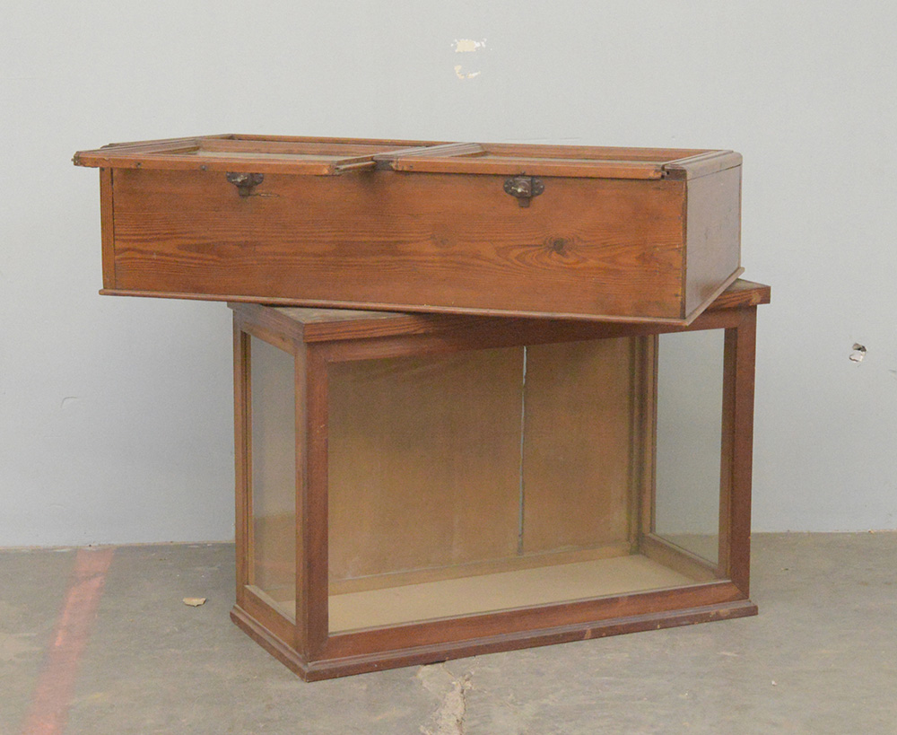 Lotto di due vetrine di cui una da tavolo (difetti)