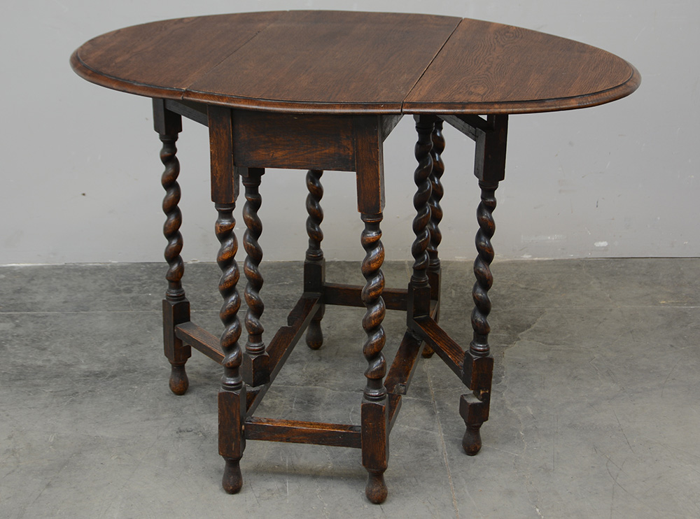 Tavolino ad alette in legno di rovere con sostegni a torciglione (cm 73x75x41).