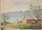 Firma indecifrata "Paesaggio lacustre con case" olio su tela (cm 50x70)...