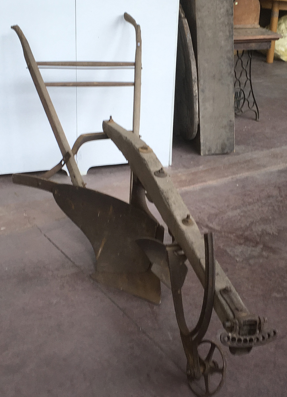 Aratro in legno a trazione animale con vomere in ferro, inizio secolo XX (difetti e mancanze)