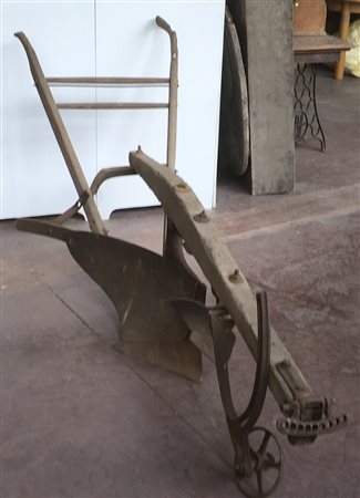 Aratro in legno a trazione animale con vomere in ferro, inizio secolo XX...