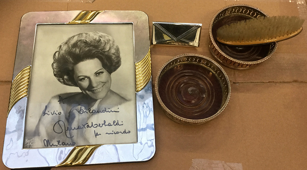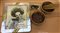 Lotto composto da due sottobottiglia, una busta, una spazzola ed una cornice,...